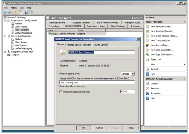 Creating the SMTP Connector : Deploy Organization Configuration.... On the left pane click on "Hub Transport" |