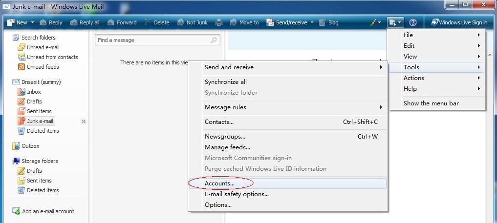 2. From the Tools menu select Accounts...