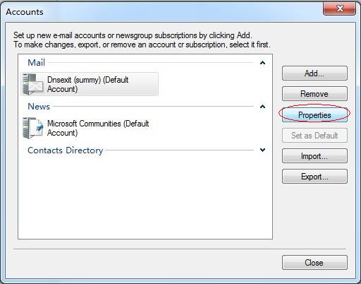 3. In the Internet Accounts window, highlight the your e-mail account and select Properties
