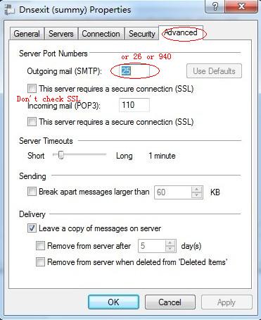 Windows Live Mail - SMTP Authentication Configuration for Mail Relay Outboud Service